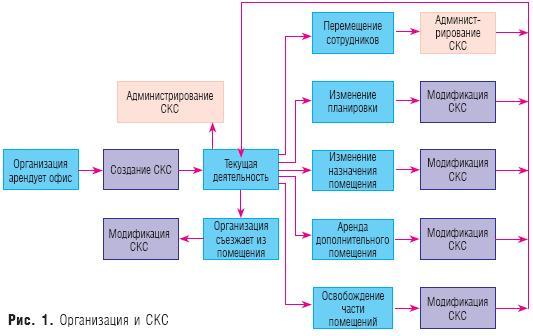 Изменения в СКС Основные расходы по содержанию СКС связаны, прежде всего, с ее возможными модификациями. Хотя, на первый взгляд, такая постановка вопроса несколько противоречит главным свойствам структурированной кабельной системы, которые всегда декларировались как ее ключевые преимущества — избыточность, масштабируемость, универсальность. То есть, по определению, в правильно построенной СКС должны быть заложены дополнительные порты на развитие, для расширения должны присутствовать резервы на всех уровнях: в кроссовых помещениях, монтажных шкафах, каналах и т.п. И, наконец, инсталлированная СКС должна быть готова для решения любых задач по передаче данных, которые могут возникнуть. Но в том-то и дело, что на практике все эти свойства реализуются чрезвычайно редко, по объективным и субъективным причинам. Избыточность и готовность к масштабированию всегда имеет свои границы, в большей или меньшей степени. Как правило, начинающий Заказчик строит себе СКС, отображающую текущий срез его организации, согласовывая проект с потребностями сегодняшнего дня. Чтобы заложить дополнительные порты и резервные коммуникации, необходимы дополнительные средства (всегда ограниченные), но самое главное — необходимы понимание и воля. Поэтому обычно выбирается минимизированное решение, которое в дальнейшем приводит к регулярным доработкам и сопутствующим расходам. Но даже самый предусмотрительный Заказчик, который учел все упомянутые выше нюансы и сумел их реализовать, не застрахован от будущих изменений СКС. Никакой самый долгосрочный прогноз не позволяет предвидеть, что будет через годы. Возможно, бизнес активизируется: маркетинговый прорыв, участие в крупном инвестиционном проекте, подъем отрасли. А может, и наоборот: последуют неудачи, кризис в отрасли, мировой кризис, наконец. Еще варианты — поглощение других компаний или вхождение в более крупную структуру, смена направления бизнеса, смена владельцев. Любые перемены, в лучшую или худшую сторону, обязательно повлекут за собой структурные преобразования, изменения в корпоративной сети. Переезд, расширение или освобождение площадей, перемена планировки, перемещение сотрудников — во всех этих случаях модификации СКС не избежать (рис. 1).